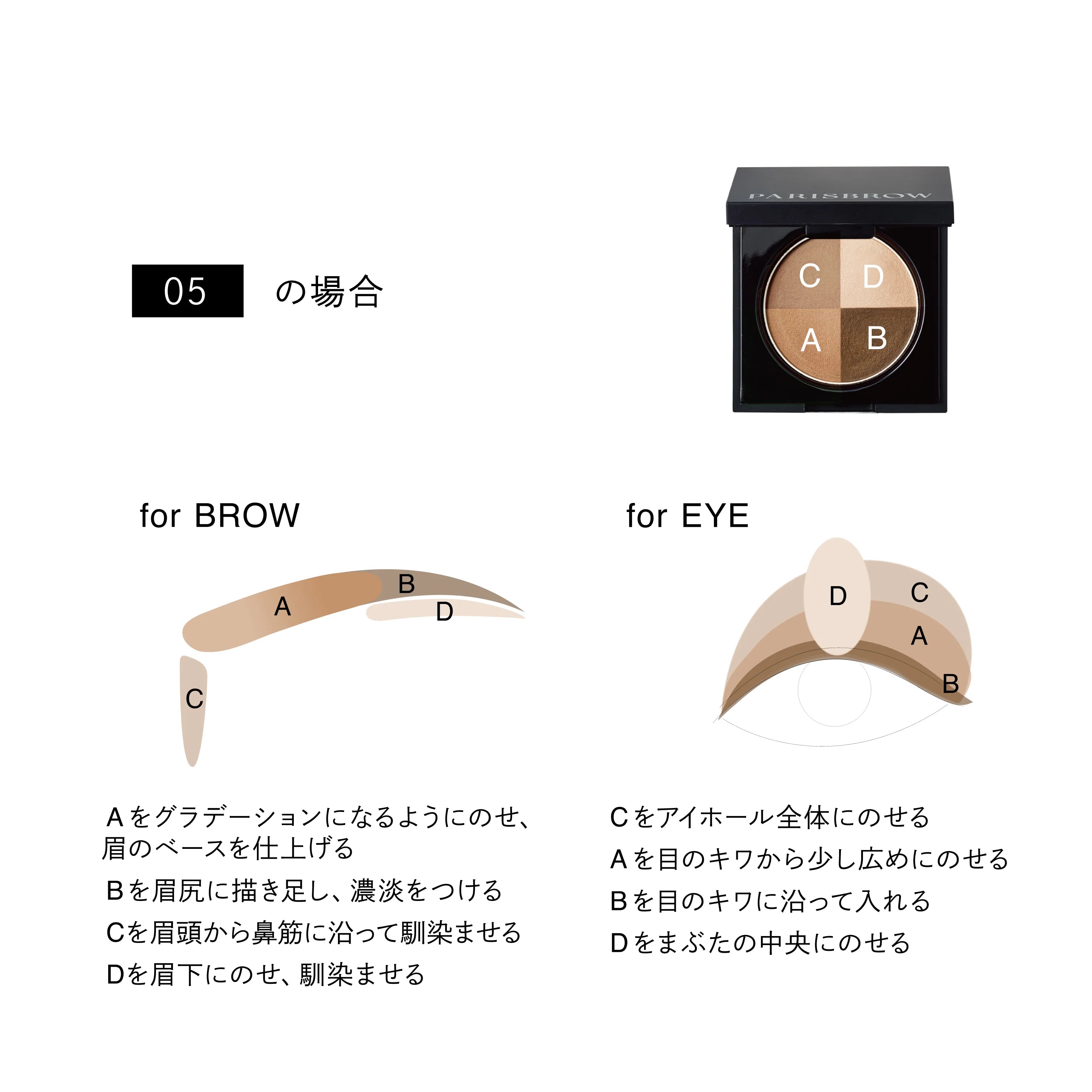 アイブロウパウダーとしてだけでなく、アイシャドウ、シェーディングとしても使用でき、 好みや気分に合わせてなりたい目元を叶えます。